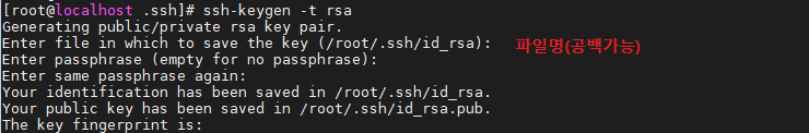 1. 클라이언트에서 키 생성. 명령어 => $ssh-keygen -t rsa